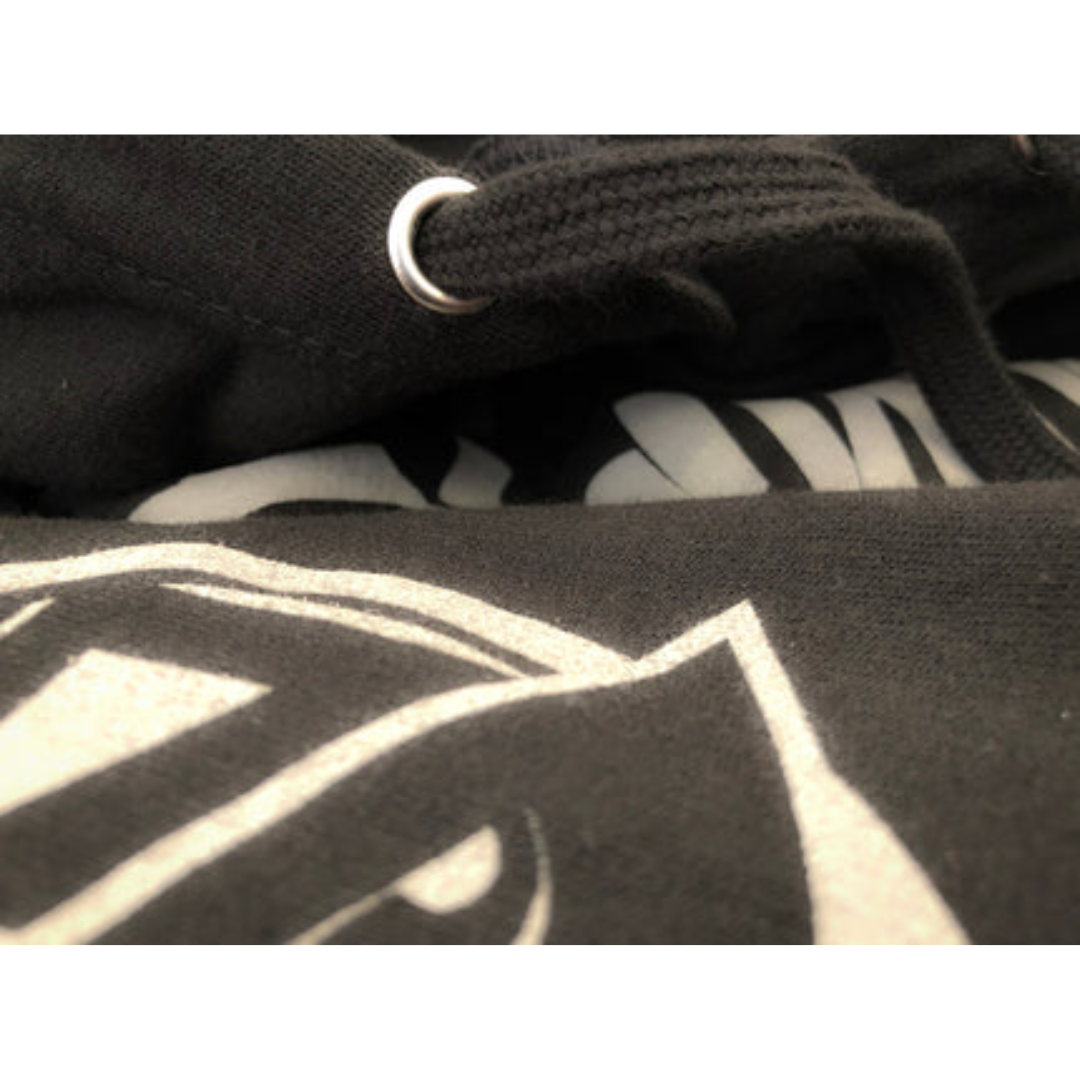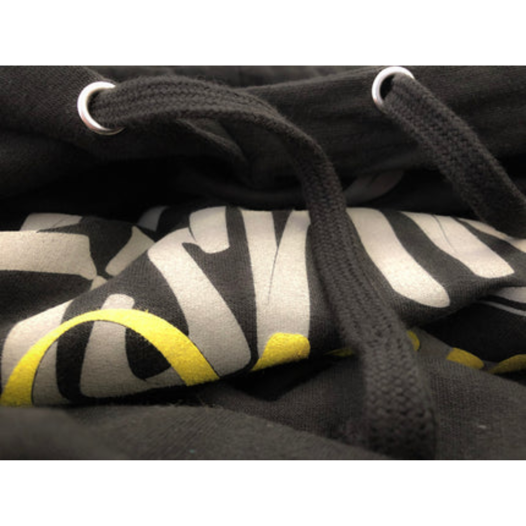 Twin needle stitching detailing, three panel double fabric hood, flatlace drawcords, kangaroo pouch pocket with small hidden opening for earphone cord feed, hidden ear phone loops, long rib cuff, deep rib hem, ribbed main pocket edge detail for comfort.