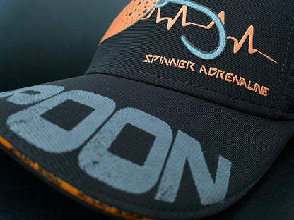 Visière : texte Spoon imprimé et ligne « adrénaline » et logo Hotspot Design brodés, sandwich de Couleur contrastée avec logo Hotspot Design imprimé sur toute la longueur.