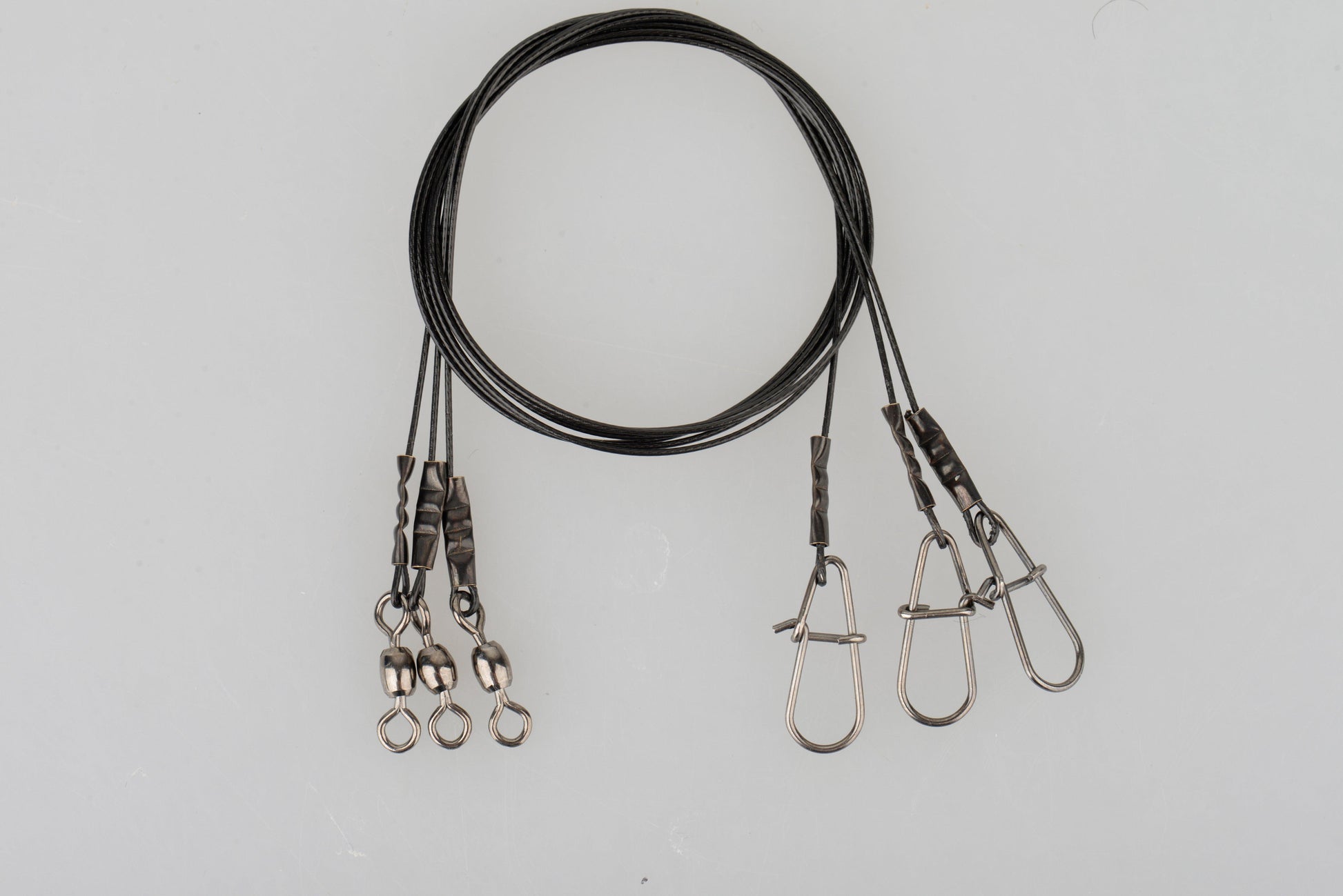 Sârmă din oțel inoxidabil ultra-rezistentă, cu șapte fire, acoperită cu un copolimer negru puternic, pentru o rezistență superbă la abraziune. Rotitor de dimensiuni perfecte și dispozitiv de blocare a acului din oțel cu arc, pentru momeli dure sau moi. O urmă ideală de știucă.
